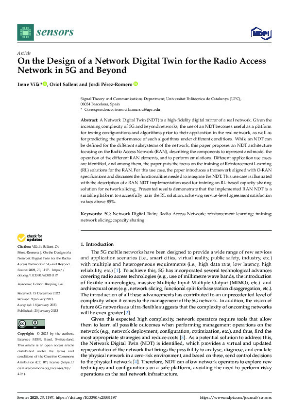 A Network Digital Twin (NDT) is a high-fidelity digital mirror of a real network. Given the increasing complexity of 5G and beyond networks, the use of an NDT becomes useful as a platform for testing configurations and algorithms prior to their application in the real network, as well as for predicting the performance of such algorithms under different conditions.
