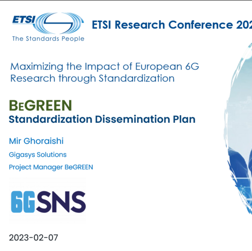 BeGREEN Standardisation Dissemination Plan in ETSI Research Conference- February 2023